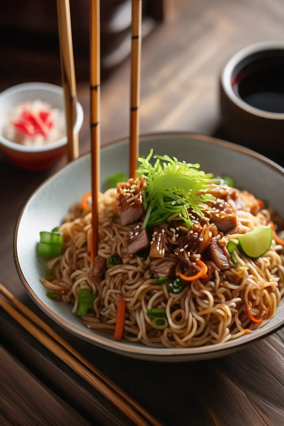 - 112 ounces chinese wheat noodles(udon noodles may be substituted)